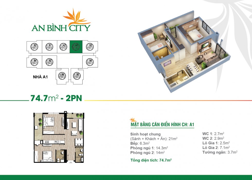 Một thiết kế hài hòa, thân thiện với môi trường, An Bình City gồm tổ hợp 8 tòa tháp, trong đó: