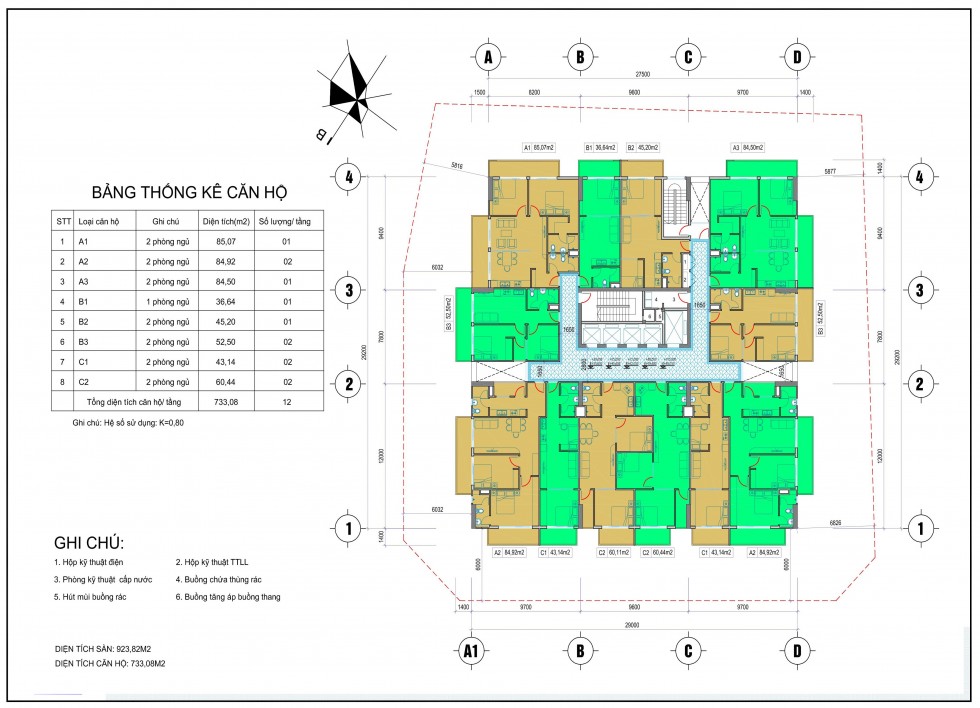 Quy mô dự án: Diện tích đât 1661.48 m2, diện tích xây dựng 1295.41 m2.